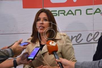 La alcaldesa Carmen Hernández, presente en el acto junto a la concejala de agricultura, Marta Hernández (NC), quiso poner en valor no solo las cualidades del cítrico local, sino la apuesta de Spar Gran Canaria por los productos de la tierra.