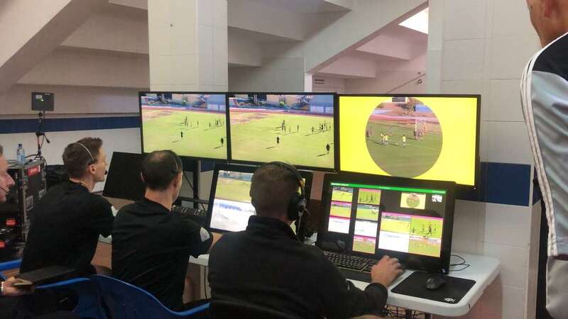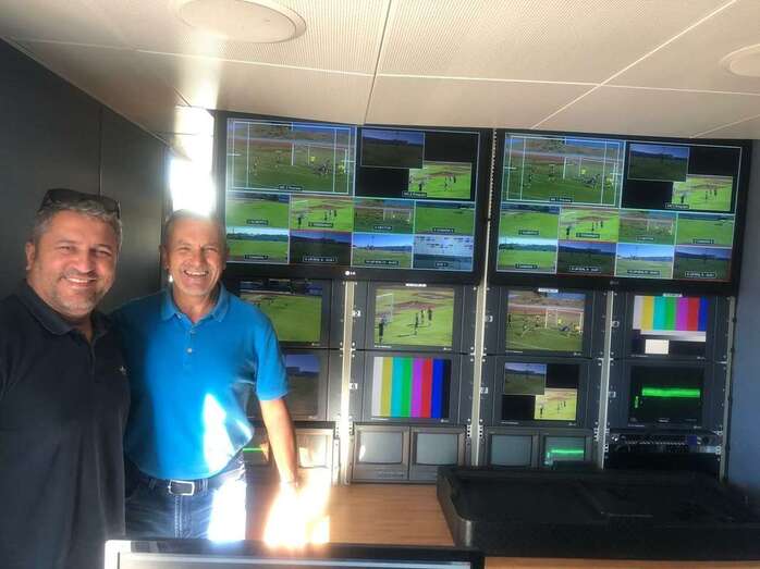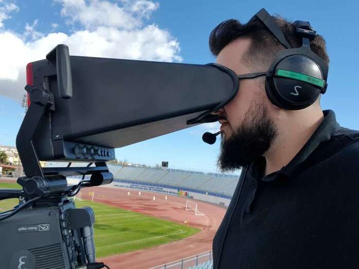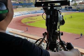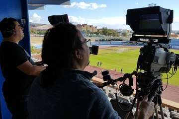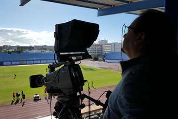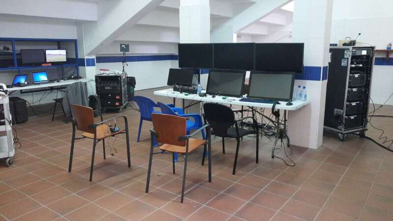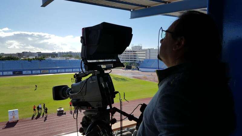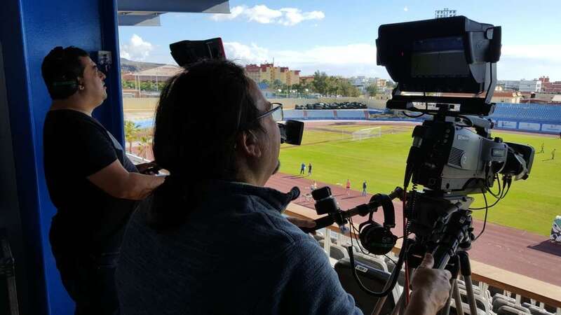 Los operadores y técnicos de Sonimac trabajan codo a codo con Misure Sport, firma proveedora del VAR para la Superliga de Suiza, en el Estadio Municipal de Maspalomas.