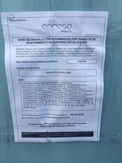 Está previsto que se lleven a cabo entre las 08.40 a 15.00 horas, aunque Endesa recalca que las líneas sobre las que se efectuarán estas interrupciones se consideran en tensión, por lo que el suministro puede restablecerse en cualquier momento.