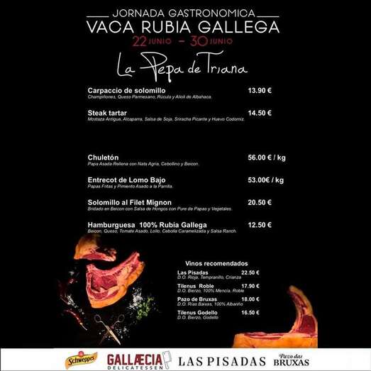 Telde.- El restaurante La Pepa de Triana, situado en el número 11 de la calle de Constantino de la capital grancanaria, ha alargado hasta el domingo 14 de julio las Jornadas de Carne Rubia Gallega, de la empresa Gallaecia Delicatessen, debido al extraordinario éxito que alcanzó la primera promoción que tuvo lugar entre el 22 y 30 junio.