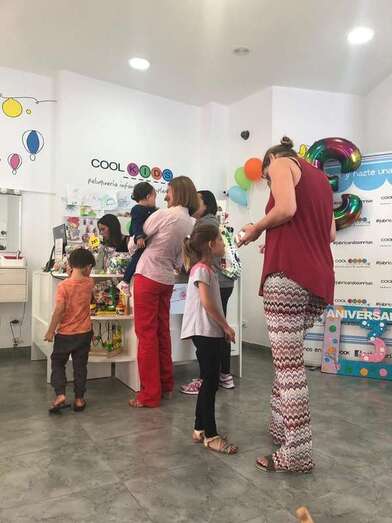 El día de ayer, no fue un día como otro cualquiera en CoolKids. Los que se acercaron al negocio pudieron hacerse fotos en un photocall creado para la ocasión, ataviarse con gorritos de cumpleaños o degustar diversas chuches tanto dulces como saladas. Cuenta Fajardo que "lo más importante es que los clientes queden satisfechos, se diviertan y sobre todo, quieran repetir".
