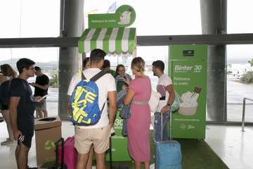 Telde.- Binter ha repartido durante este martes helados con sabor de ambrosía Tirma entre los pasajeros presentes en las zonas de embarque de los aeropuertos de Gran Canaria y Tenerife Norte, para agradecerles la confianza depositada en la aerolínea a lo largo de sus 30 años de vuelo y refrescarles el verano.