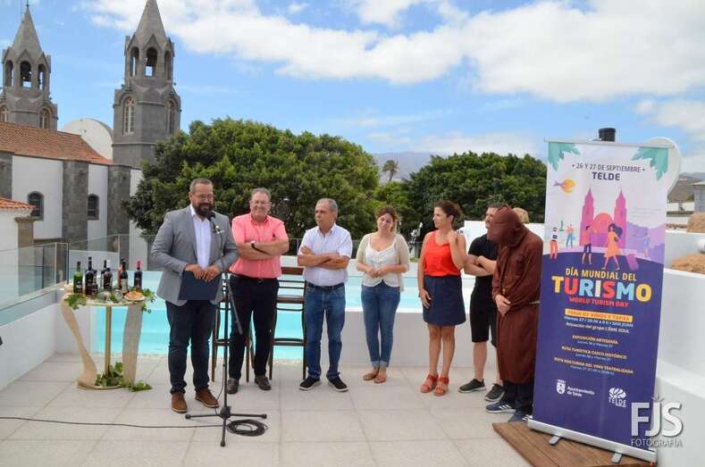 La programación, ya avanzada la semana pasada, se presentó públicamente este martes en una rueda de prensa que tuvo como marco un lugar muy al caso y con unas vistas privilegiadas del casco fundacional de la ciudad, la terraza-solarium del Hotel Emblemático Siglo XVI. Allí, a tan solo unos metros de la plaza de San Juan, que precisamente será el epicentro de las acciones que se lleven a cabo en el municipio por este Día Mundial del Turismo, el concejal Jonay López (Coalición Canaria) explicó que la idea es potenciar la marca Telde divulgando su riqueza cultural, gastronómica, paisajística e histórica entre el turismo, pero también entre la sociedad local para que los propios vecinos conozcan su patrimonio y lo puedan difundir. Y además, aprovechando que en esta edición el lema es Turismo y empleo: un futuro mejor para todos, involucrar a los quince alumnos del PFAE Paraje, que están formándose en promoción turística e información al visitante.