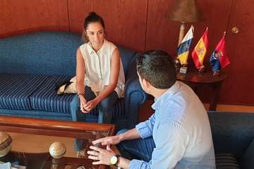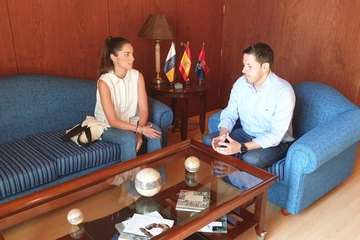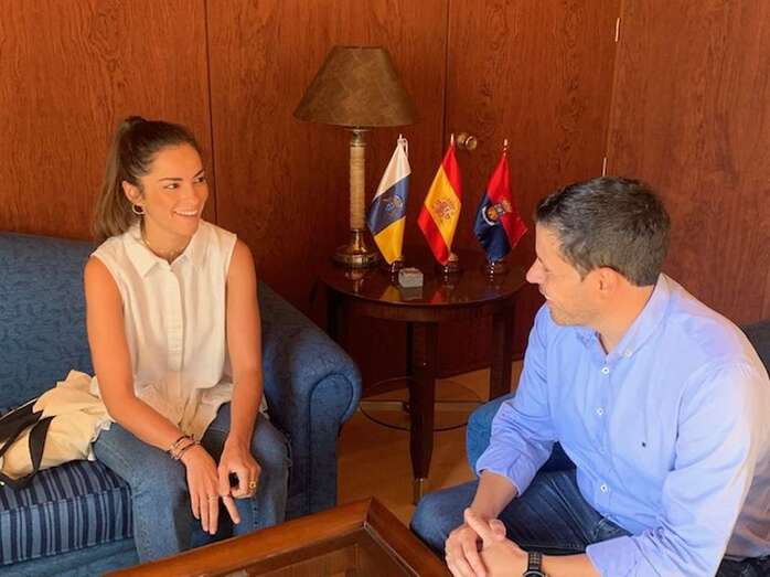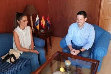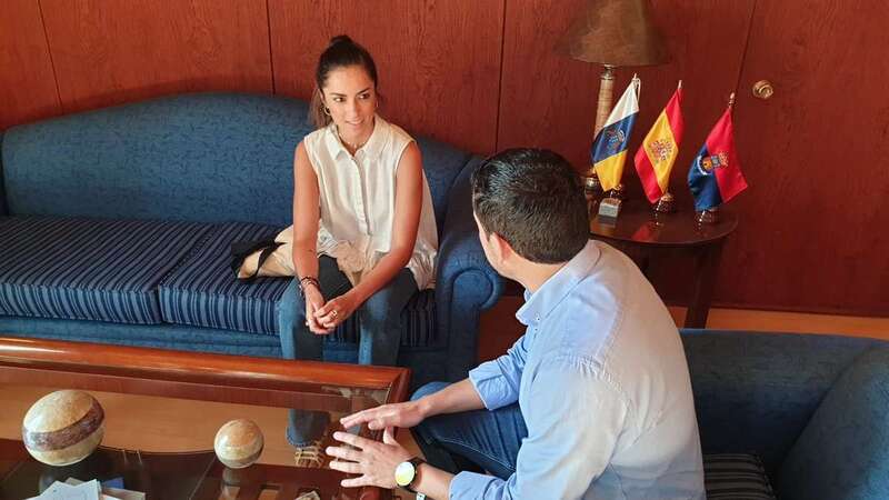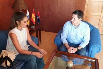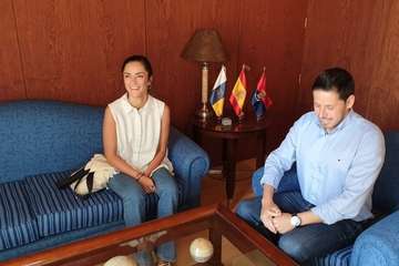 Telde.- El alcalde de Telde, Héctor Suárez, recibió este viernes a la diseñadora Elena Morales, ganadora del Premio Heineken Nuevo Talento de Moda Baño que se otorgó durante la Semana de la Moda Baño de Gran Canaria 2019.