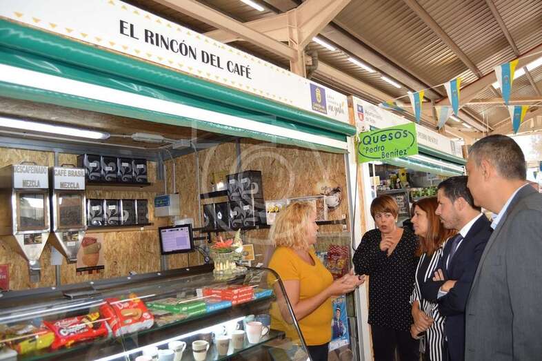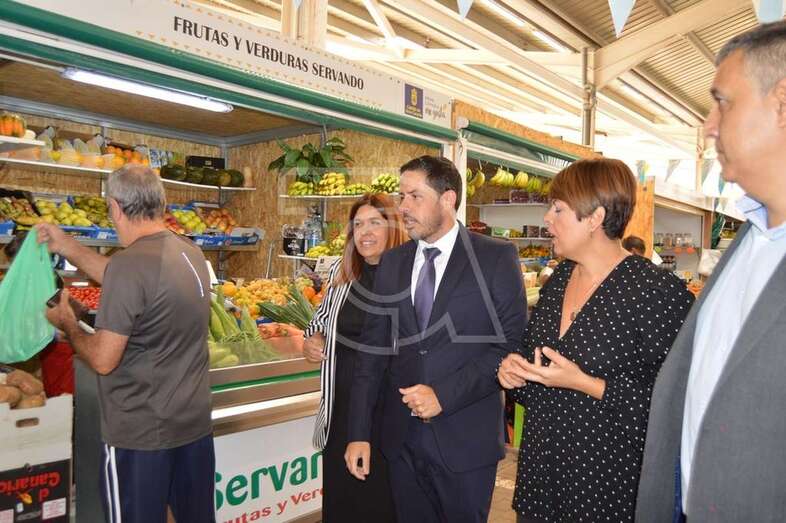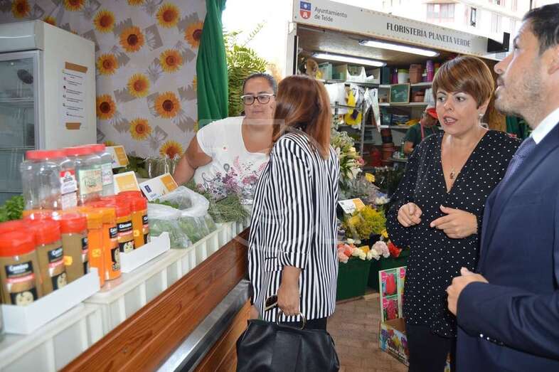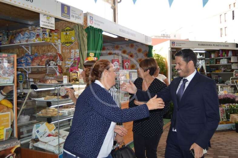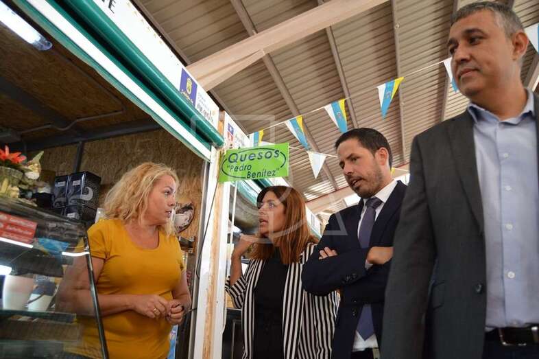 El alcalde Héctor Suárez (Coalición Canaria), la vicealcaldesa Carmen Hernández (Nueva Canarias), el concejal de Mercado, Servando González (NC), y la consejera de Industria y Comercio del Cabildo, la teldense Minerva Alonso (NC) visitaron a primera hora de la mañana el área polivalente de Narea. Junto a la presidenta de los empresarios del Mercado, Ana Jiménez, la comitiva política fue recorriendo uno a uno todos los negocios y saludando a clientes y trabajadores.