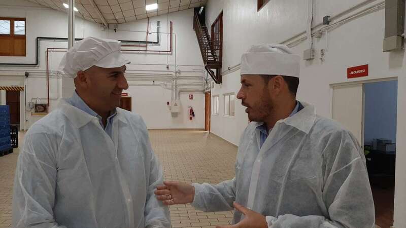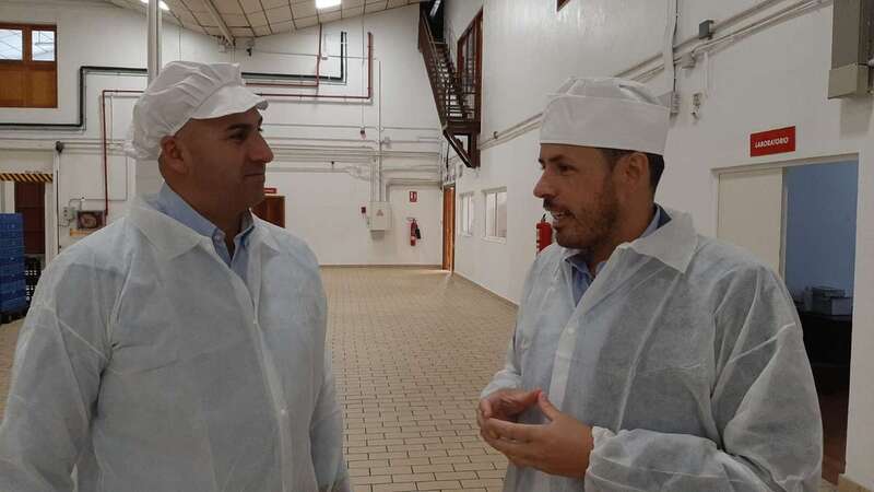 Junto a su gerente, David González, el primer mandatario de la ciudad recorrió las instalaciones de esta empresa que se instaló en Telde en el año 2013 y que desde entonces, con una producción de quesos que abarca una gama de frescos, semicurados, curados y ahumados y para la que precisa de más de 7 millones de litros de leche al año, ha duplicado el número de empleos que genera en el municipio hasta garantizar unos 80 puestos de trabajo entre directos e indirectos.
