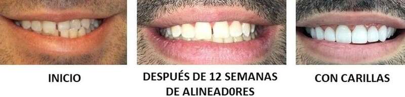 Aquí tenemos todo el proceso desde el inicio, alineado de los dientes con alineadores y la finalización con carillas.