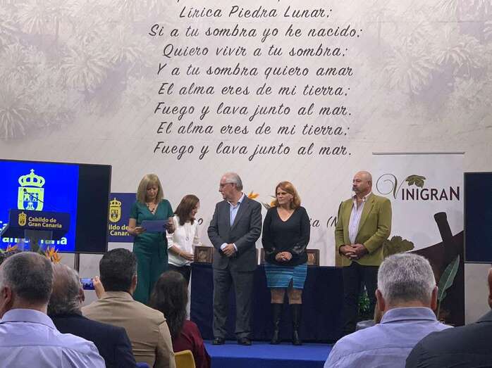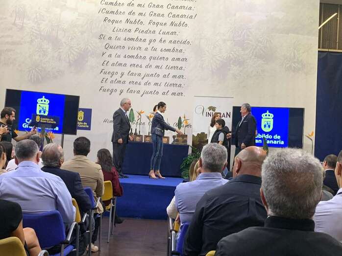 En esta gran fiesta también fueron entregados los premios de la Cata de Vinos de Gran Canaria 2019. Hidalgo y la vicepresidenta del Consejo Regulador de la Denominación de Origen de Gran Canaria, Sandra Armas, fueron los encargados de dar los galardones a los vinos Eidan, Agala y Valara en las categorías tinto joven, blanco seco y la que engloba a los semiseco, semidulce, dulce y licoroso, respectivamente, mientras que la distinción a la mejor imagen y presentación recayó en Mocanal.