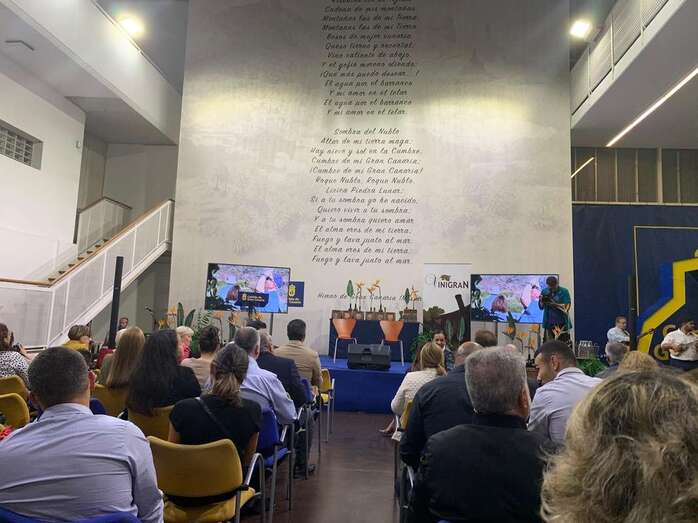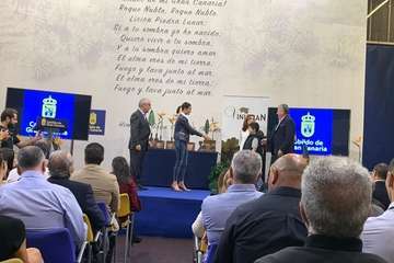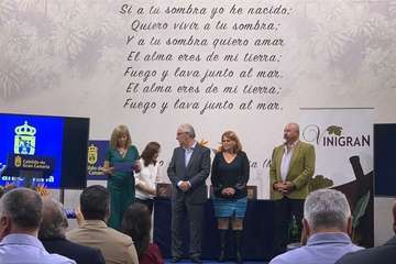 El acto, que comenzó con los acordes de ‘Pájaro campana’, ‘Galopera’, ‘Petit Vals’ y ‘Tico tico’ de la mano del timplista Alberto González y el guitarrista José Falcón, concluyó con la degustación de productos de la tierra, entre ellos los exquisitos quesos y vinos de Gran Canaria.
