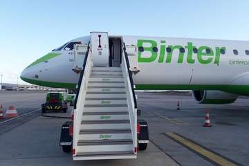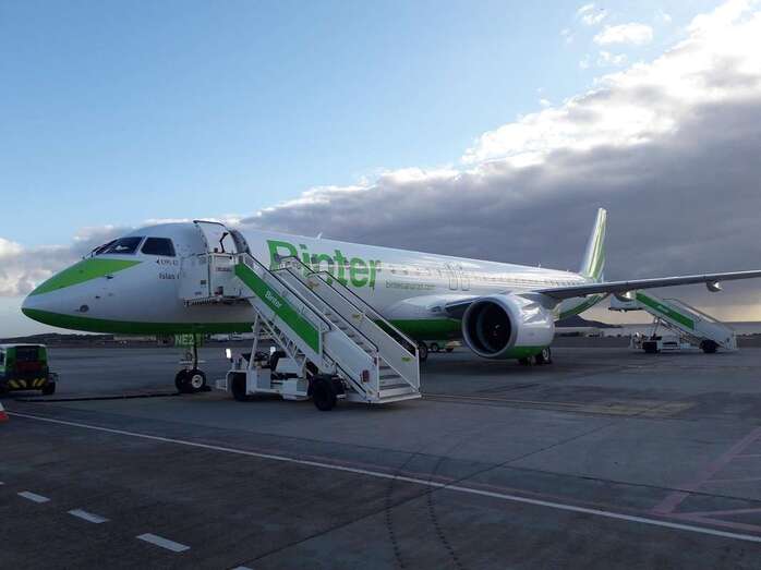 Telde.- Esta pasada madrugada tomaba tierra en el Aeropuerto de Gran Canaria el primero de los cinco aviones modelo E195-E2 que la aerolínea canaria Binter ha comprado a Embraer.