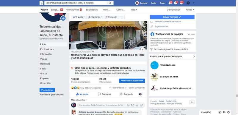 En la página de Facebook de TELDEACTUALIDAD, la noticia sobre el trancazo inesperado de los despachos de Haypan ha llegado a 106.066 personas, alcanzó 20.514 interaccciones, recibió 141 comentarios y ha sido compartida hasta el momento 717 veces, unos datos que hablan por sí sólo el extraordinario interés que despertó la información entre los usuarios de esta importante red social.