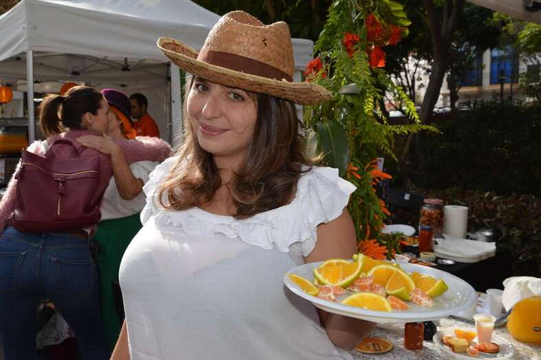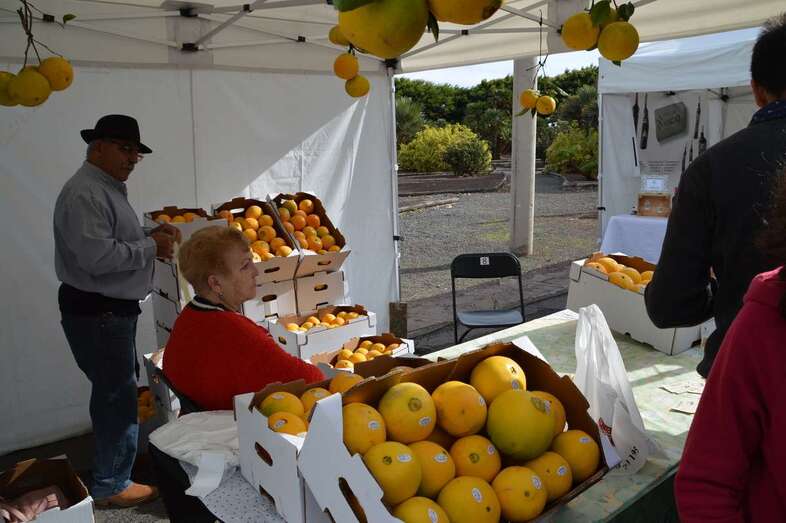 La muestra, que comercializó más de 6.000 kilos de naranjas de gran calidad (media hora antes de su final los puestos ya habían vendido más de 6 toneladas), además de productos elaborados con esta fruta, mieles, quesos, vinos y otros productos de Telde, comenzó pasadas las 10 de la mañana con un tiempo espléndido y desde primera hora era notable la concurrencia de público, que hacía sus compras por kilos en los puestos de la Asociación V9, El Espigón, Alberto García Gil y El Señorío de Cabrera, los colmenares Violeta y Florido, La Tirijala, L’Enrosadira, La Higera Mayor, Cooperativa Cosecha Directa, Panadería Artiles, Trabel, quesos Lomo Gallego y Bodega Hinojo.