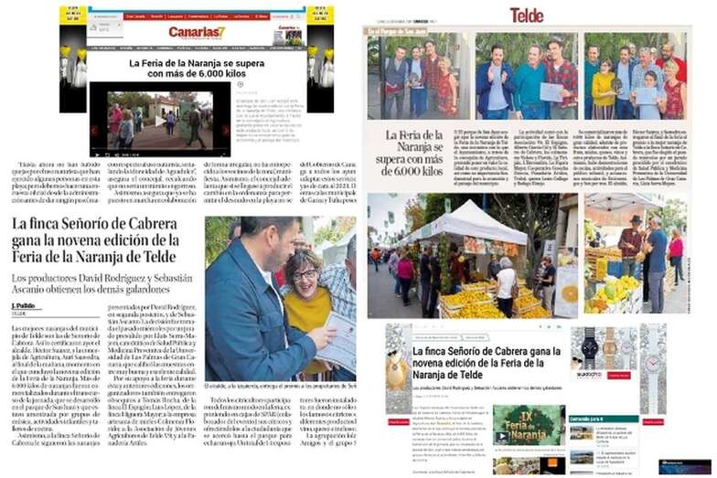 Noticias sobre la Feria de la Naranja en las ediciones digitales y de papel de La Provincia y Canarias7.