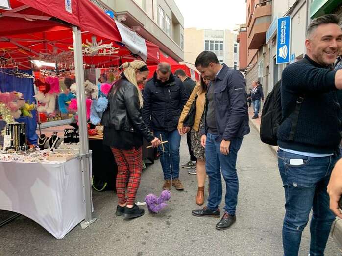 El alcalde Héctor Suárez y la concejala de Desarrollo Local, Lidia Mejías (Coalición Canaria) inauguraron este jueves esta feria que incluye numerosas actividades paralelas para animar estas últimas jornadas previas al día de Reyes. Los 21 puestos están distribuidos en las calles Navarra y Saulo Torón y permanecerán abiertos de 10.00 a 21.30, salvo el 5 de enero, que se extenderá hasta las 23.00 horas.
