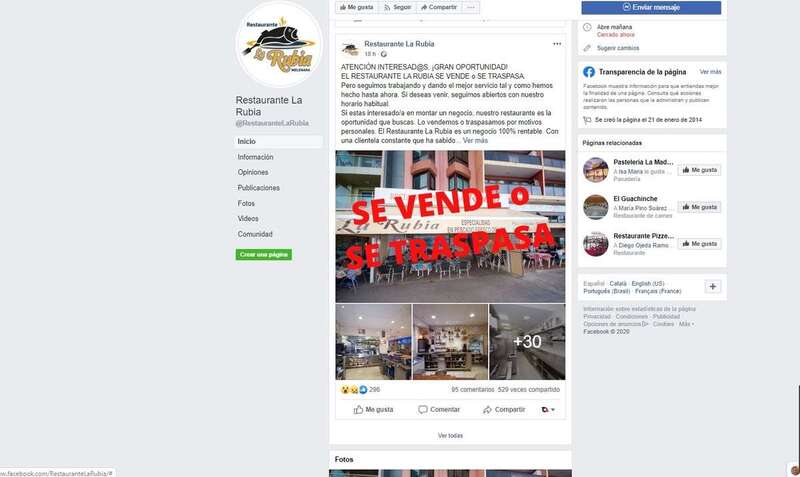 La Rubia como es conocida cariñosamente la propietaria del restaurante aclara que hasta su venta o traspaso el negocio seguirá abierto con su horario habitual “dando el mejor servicio tal y como hemos hecho hasta ahora”.