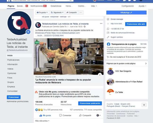 En los perfiles de Facebook tanto de TELDEACTUALIDAD como del propio restaurante, la noticia de la venta o traspaso ha sido visualizada por más de 100.000 personas y ha generado miles de interacciones y cientos de comentarios.