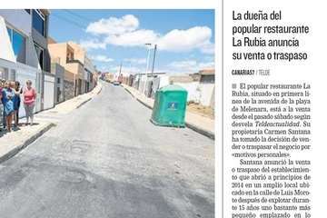 Telde.- “No tengo ganas de seguir trabajando porque lo llevo haciendo desde los 9 años”. Esta es la razón de peso que esgrime Carmen Santana, titular del restaurante La Rubia de Melenara, para poner en venta o traspasar este próspero negocio.