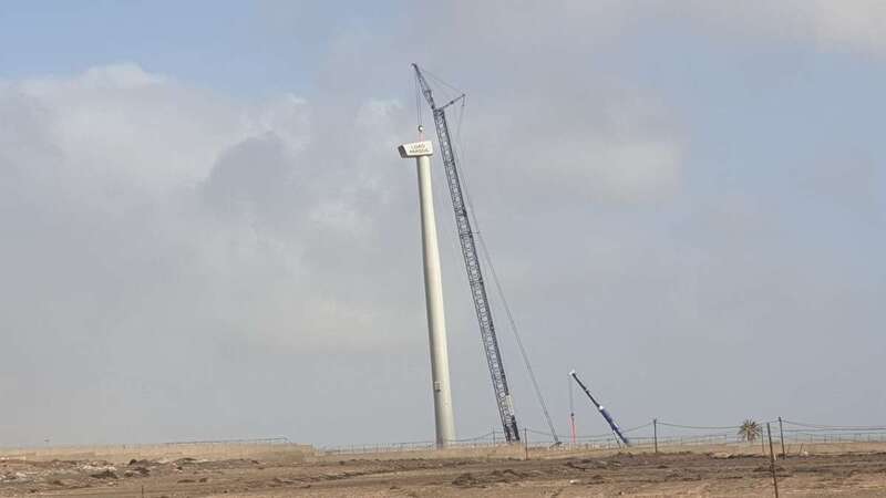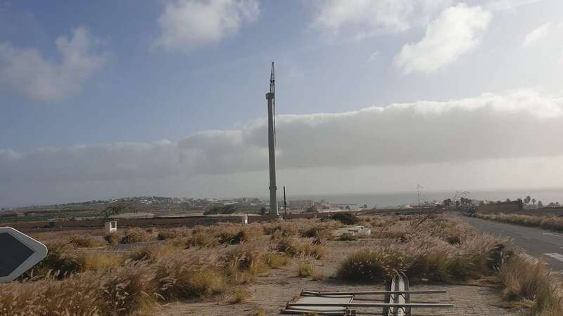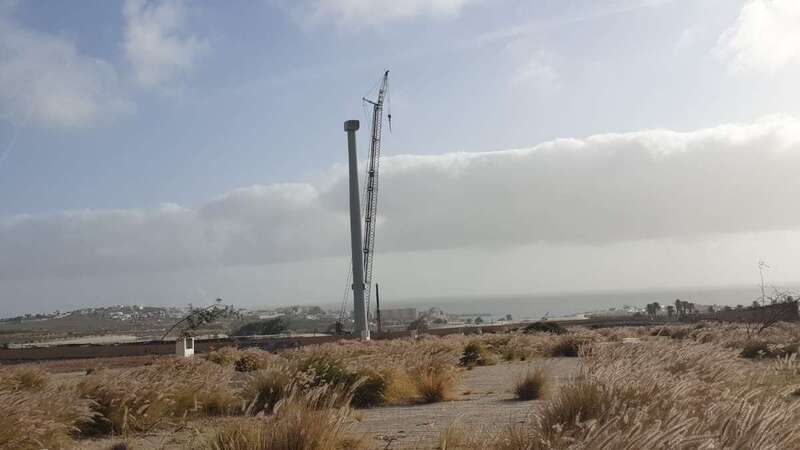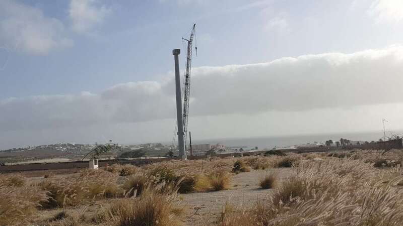 Telde.- Continúan adelante las delicadas tareas de montaje del parque eólico de 4 MW (megavatios) que la empresa Loro Parque S.A. promueve en la zona industrial de Salinetas, en el conocido como Camino del Conde. El gigantesco aerogenerador, que tendrá una altura de 150 metros, va cobrando forma y ya cuenta con la góndola.