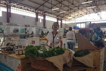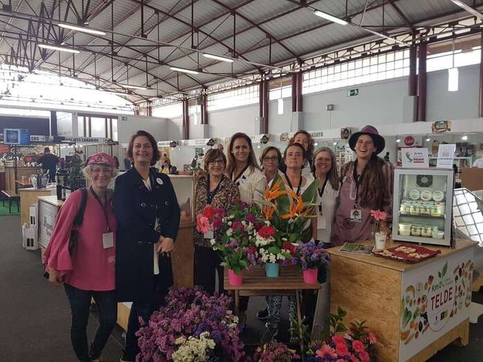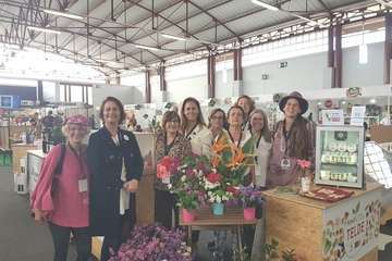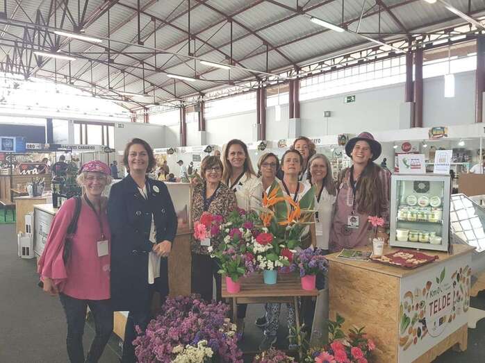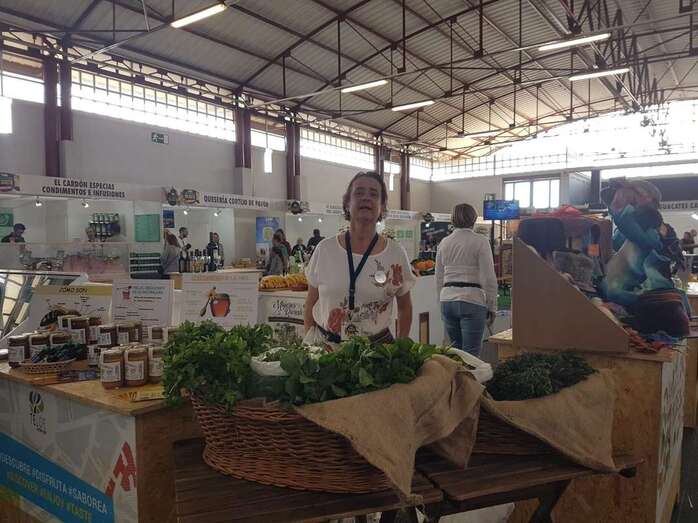 Un grupo de mujeres del mundo rural expone sus productos y comparte sus experiencias en el puesto del municipio