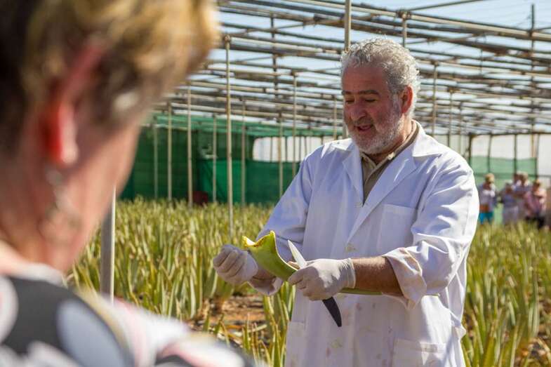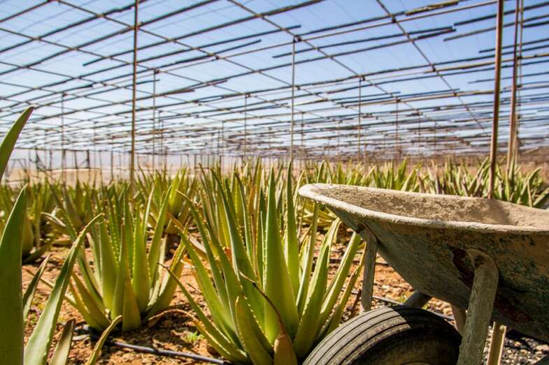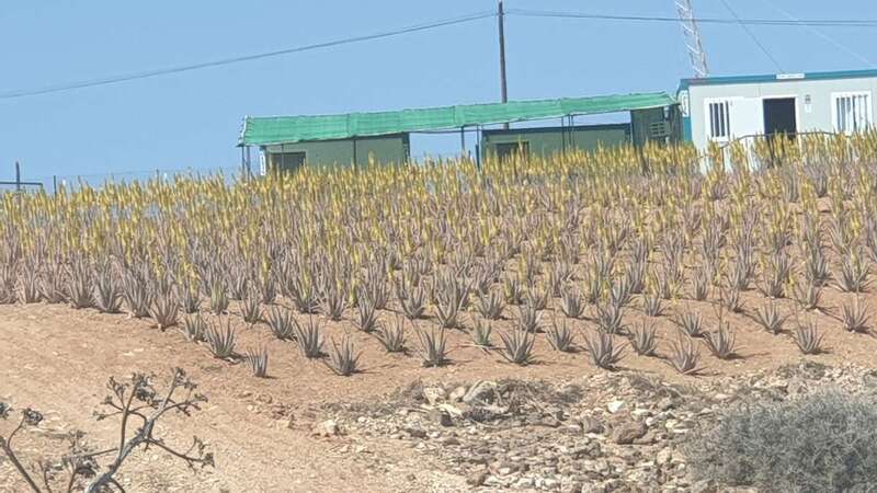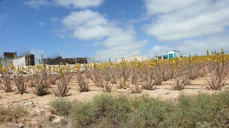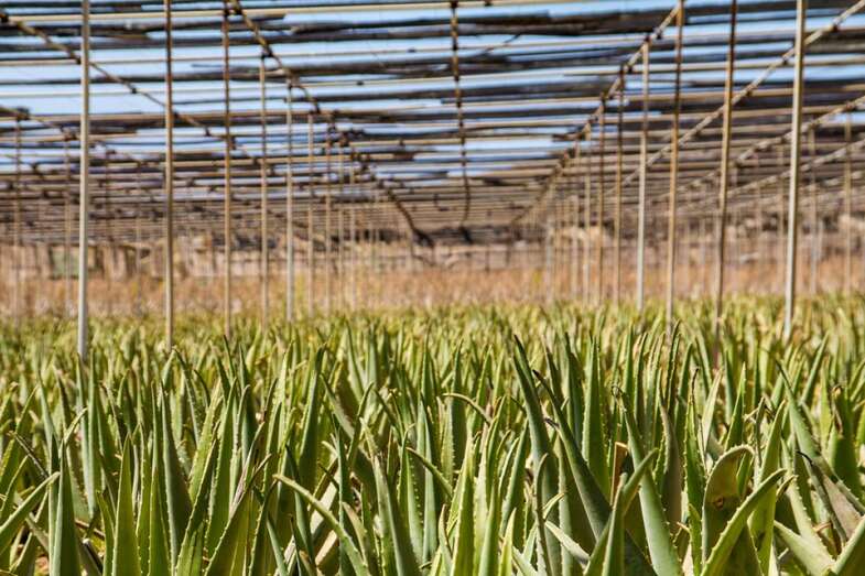 Allí, Finca Canarias cultiva ecológicamente al aire libre más de 35.000 plantas de aloe vera en un entorno donde está construyendo ahora tres naves para el envasado, empaquetado y punto de venta de este producto, al que se le atribuye propiedades cosméticas -es ingrediente principal de muchos productos de belleza- y como remedio natural para varias dolencias.