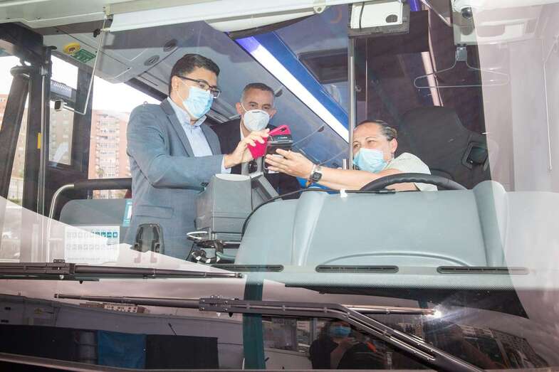 El vicepresidente y consejero de Transportes, Miguel Ángel Pérez del Pino, muestra el pago con tarjeta bancaria a través de aplicación de telefóno móvil (Foto TA) El vicepresidente y consejero de Transportes, Miguel Ángel Pérez del Pino, muestra el pago con tarjeta bancaria a través de aplicación de telefóno móvil (Foto TA)