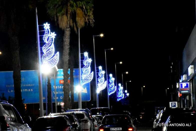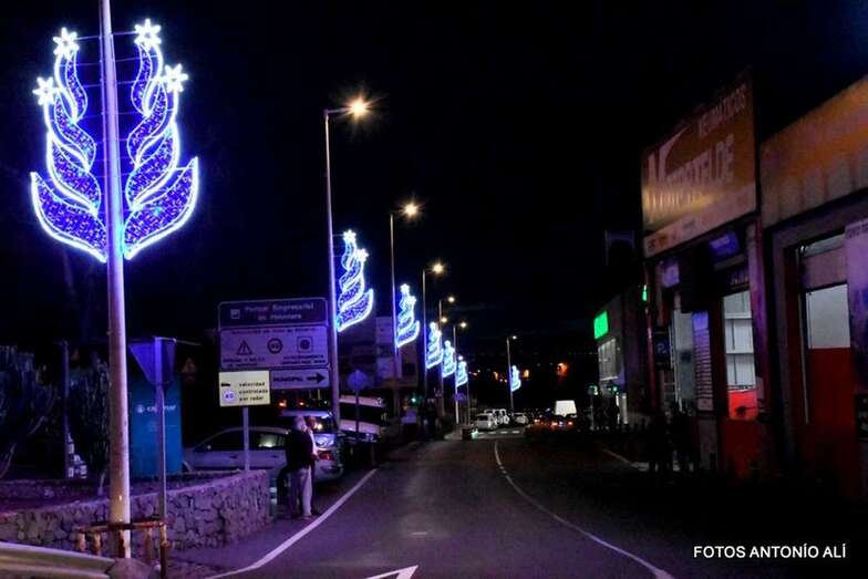 El encendido tuvo lugar esta tarde a las 18.30 horas en un acto al que asistieron empresarios de la zona y el concejal delegado de Alumbrado Público, Jonay López.