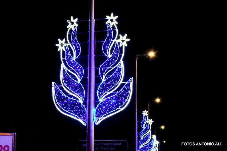 Telde.- El Parque Empresarial Melenara (Las Rubiesas) ha querido sumarse este año a la Navidad con una espectacular y elegante decoración lumínica de destellos azules que adorna el frente de este emporio comercial-industrial que da a la autovía GC-1, la principal arteria de comunicación de Gran Canaria.