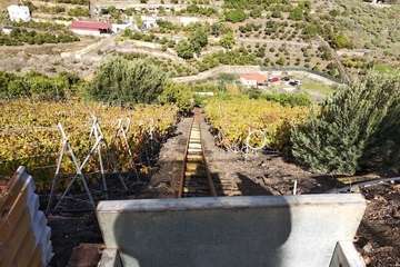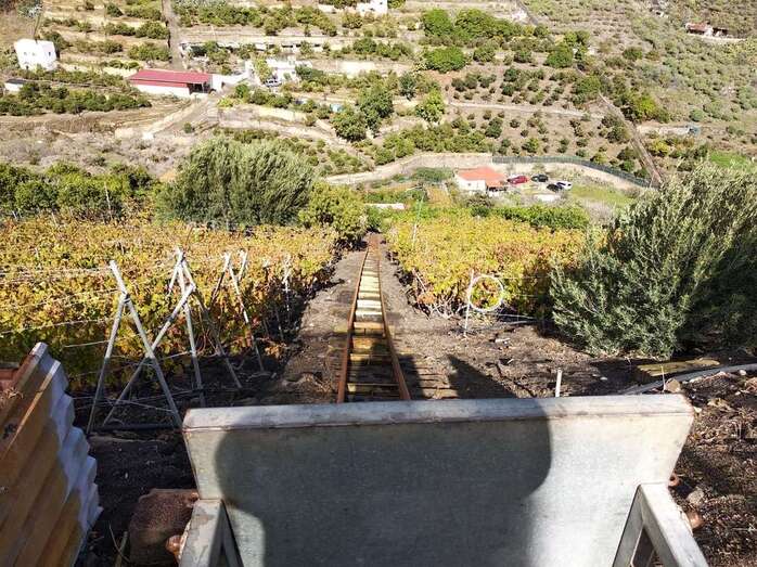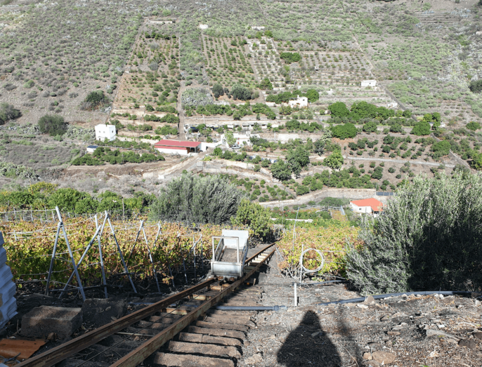 Con unos viñedos empinados y difícilmente accesibles, que crecen en la parte del municipio que está dentro de la zona del Monte Lentiscal, la consecución de la vid en la finca teldense es un ejemplo vivo de la agricultura heroica para elaborar sus vinos. De hecho, un tren ayuda a las personas responsables de la finca a cultivar las uvas de la media hectárea que contiene viñedos.