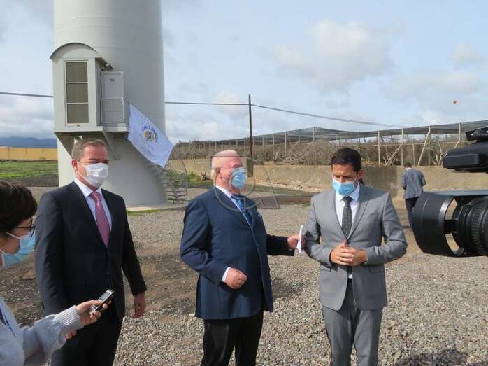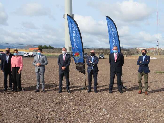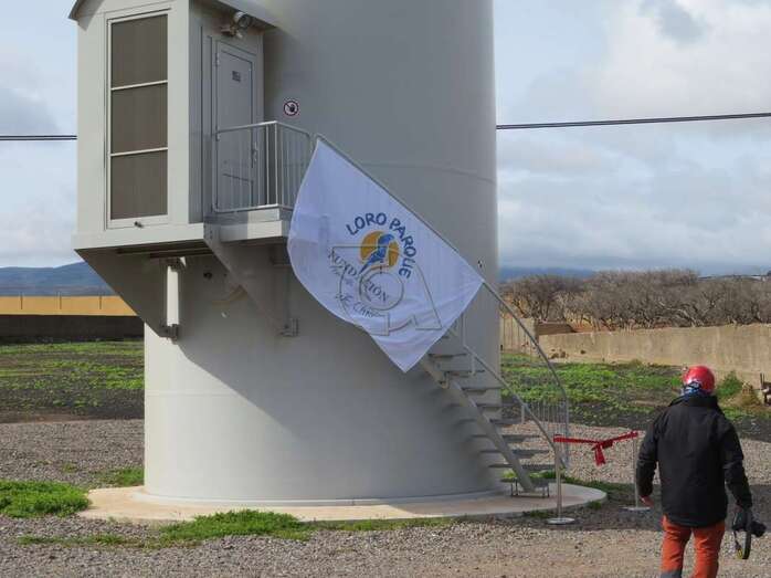 Telde.- El gigantesco aerogenerador de 150 metros de altura y aspas de 60 metros de largo que producirá 4 MV (megavatios) comenzó a funcionar con puntualidad británica a las 11.30 horas de este miércoles después de varios días de prueba. El acto inaugural tuvo lugar contó con la presencia de Héctor Suárez, alcalde de Telde; Wolfgang Kiessling, presidente de Loro Parque, y Christoph Kiessling, vicepresidente de Loro Parque y presidente de Loro Parque Fundación, además de otros representantes de la compañía.