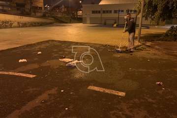 Los comerciantes se ven obligados a recoger la basura que dejan los botellones de la noche anterior para poder montar sus puestos y velar por la seguridad de los viandantes.