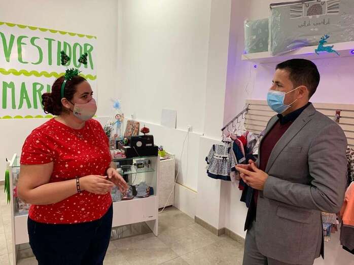 La tienda, regenteada por Ruth Marín, es uno de los negocios que se han implantado este año en San Gregorio. Durante la visita, Marín compartió con el alcalde su iniciativa y explicó las dificultades que ha entrañado montar el comercio en época de pandemia.