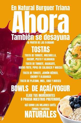 La moderna hamburguesería, que se caracteriza por un concepto innovador de comida saludable con infinidad de batidos y zumos naturales, propone unas maravillosas tostas, bowls de Açaí, café hecho con mucho mimo y unos estupendos batidos y zumos de fruta natural cortada día a día para que el cliente sienta el sabor de la tierra directamente en su boca.