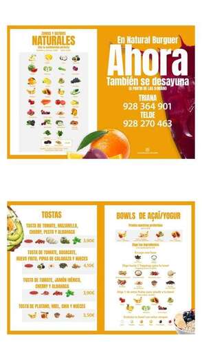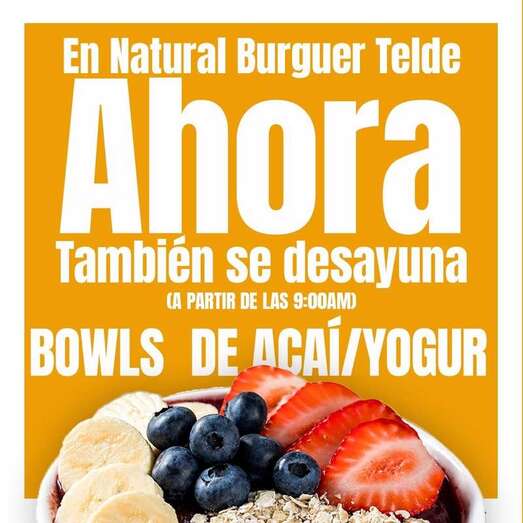 Telde.- Natural Burguer Telde ofrece desde hace unos días como novedad desayunos y meriendas naturales que se pueden consumir en su espléndida terraza que da a la rotonda de La Barranquera o llevarse a casa o lugar de trabajo.