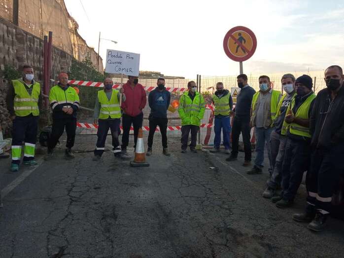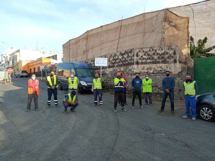 Telde.- El secretario general de UGT-FICA en Canarias, Juan Carlos Pérez Luzardo, estuvo este martes junto a los trabajadores de la empresa Petrecan que ejecutan el ensanche de la carretera de Melenara y que están en huelga para exigir el pago de sus sueldos.