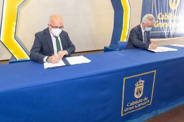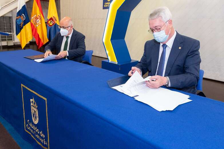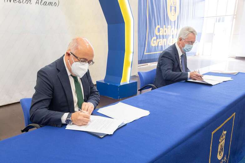 La firma del convenio entre el Cabildo de Gran Canaria y la Cámara de Comercio se firmó este jueves/TA. La firma del convenio entre el Cabildo de Gran Canaria y la Cámara de Comercio se firmó este jueves/TA.