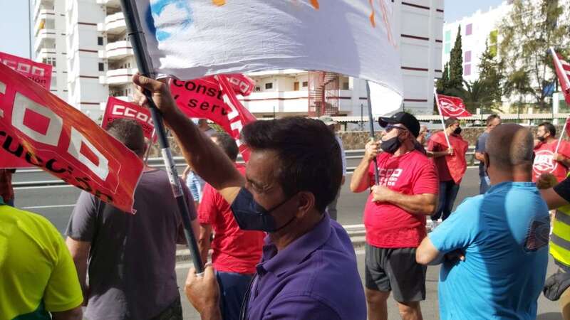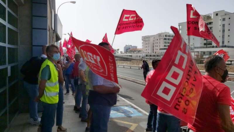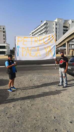 Telde.- Los trabajadores de Petrecan, la empresa del grupo Hermanos Santana Cazorla que entre otras obras ejecuta el ensanche de la carretera de Melenara, en Telde, se concentraron este lunes a las puertas de la entidad para exigir el pago de sus salarios.