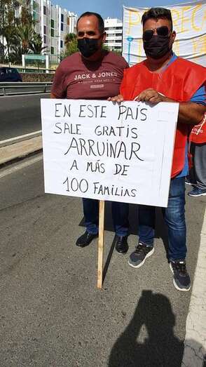 La plantilla, que lleva varios meses sin cobrar, inició este lunes una huelga completa. Los empleados se manifestaron frente a la sede de Hermanos Santana Cazorla en Maspalomas.