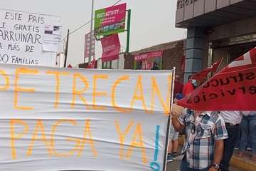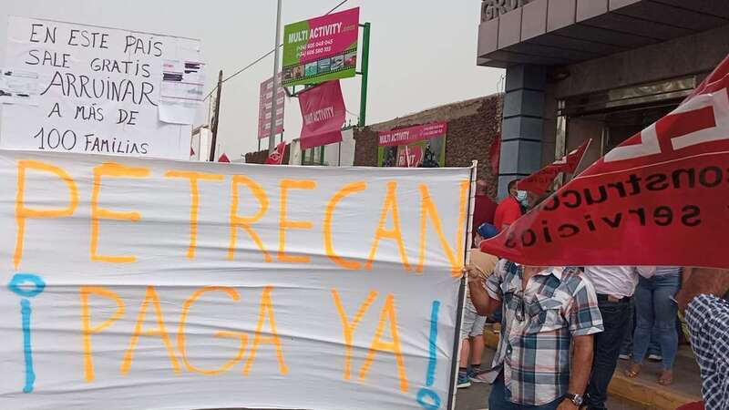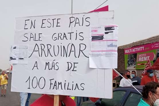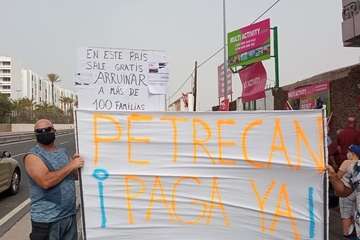 Telde.- Segundo lunes consecutivo de movilización de los trabajadores de Petrecan, la empresa del grupo Hermanos Santana Cazorla que entre otras obras ejecuta el ensanche de la carretera de Melenara, en Telde.