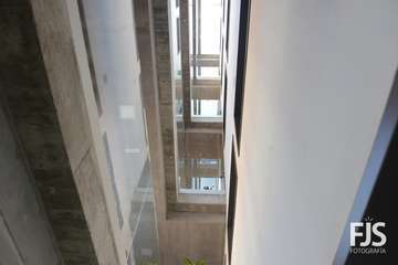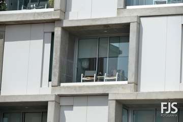 Orientado al sur y con plaza de garaje para cada vivienda, tiene también una importante instalación fotovoltaica para atender las necesidades energéticas del edificio, como un ascensor de bajo consumo o las luces comunes, y está dotado de termos de agua caliente de aerotermia, que consumen el 5 por ciento de lo que un termo eléctrico habitual.