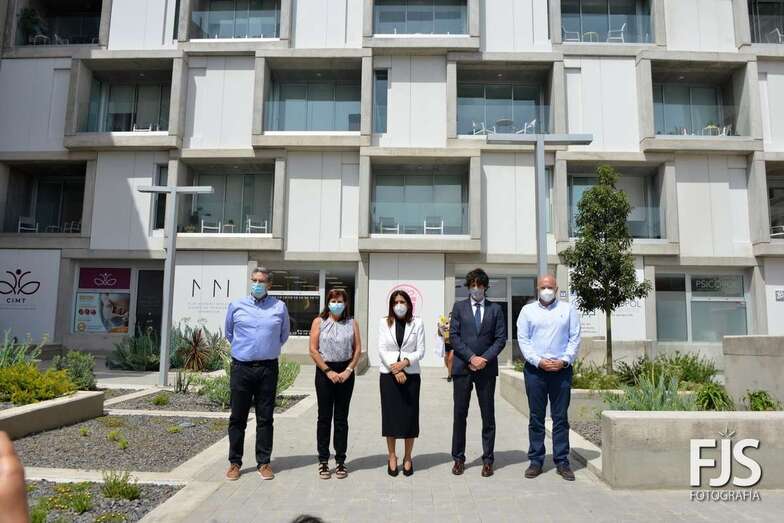 En el acto participó también el gerente de la empresa Edificios Singulares, Miguel Ángel Suárez; el vocal de la Junta de Gobierno del Colegio Oficial de Arquitectos de Gran Canaria, Ramón Cruz Perdomo; y el arquitecto Pedro Romera, quien destacó el uso de dos herramientas de la arquitectura tradicional canaria: la ventilación natural y la protección del sol.