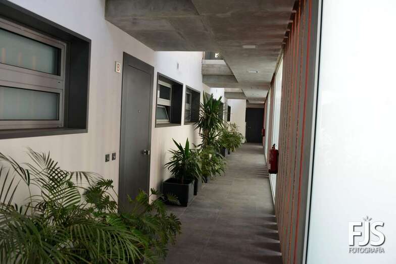 El 'Lola Massieu' es un edificio bioclimático que reduce sus necesidades de climatización, con buena parte de sus fachadas ejecutadas en hormigón visto o revestidas con paneles de composite, con una trasera abierta.