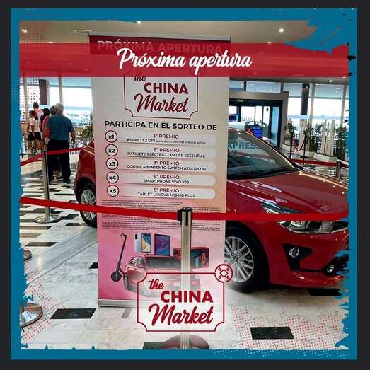 Para celebrar su inminente apertura, en la puerta de China Market hay un gran coche que está destinado a pertenecer a uno de sus futuros clientes. La forma de participar es muy simple: cada 15 euros de compra se le da al comprador un boleto. El día 5 de enero se sorteará el coche marca Kia entre todos los boletos repartidos, que, en realidad, es solo el primer premio de una serie de premios muy interesantes entre los que se encuentran regalos como patinetes eléctricos, consolas Nintendo, Smartphones o Tablets.