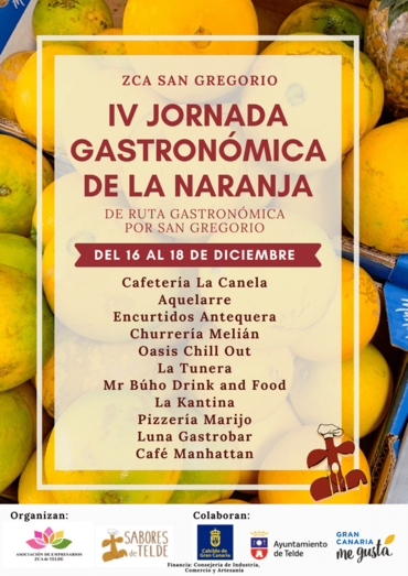 Se trata de una cita gastronómica cuyo objetivo es mostrar la versatilidad de la naranja de local en diversos platos gastronómicos, que tendrá lugar del 16 al 18 de diciembre en el barrio de Los Llanos y cuenta, además, con la colaboración del Cabildo de Gran Canaria.