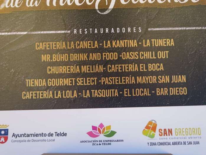 En esta ocasión, son 13 los establecimientos que se han sumado a la iniciativa y en donde se podrá degustar los platos elaborados específicamente para esta jornada: Cafetería La Canela, La Kantina, La Tunera, Mr. Búho Drink and Food, Oasis Chill Out, Churrería Melián, Cafetería El Boca, Tienda Gourmet Select, Pastelería Mayor San Juan, Cafetería La Lola, La Tasquita, El Local, Bar Diego.