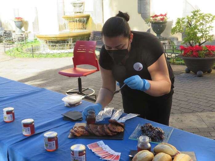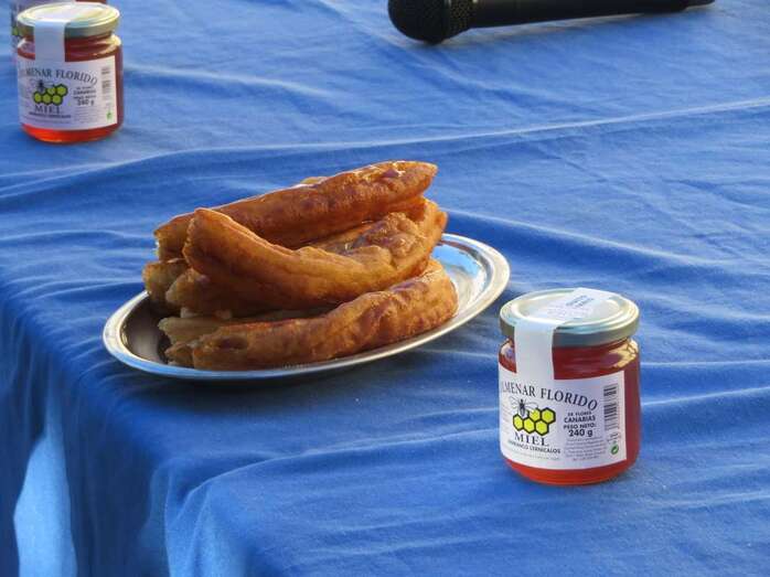 Entre las propuestas gastronómicas que se ofrecerán en el marco de estas Jornadas, pulguitas de jamón ibérico, tortillas de carnaval, churros con gofio espolvoreo, pinchos de queso, nueces y chorizo de Teror o hamburguesas con queso rulo de cabra y manzana asada. Todas ellas aderezas con un poco de miel, como no, de Telde.