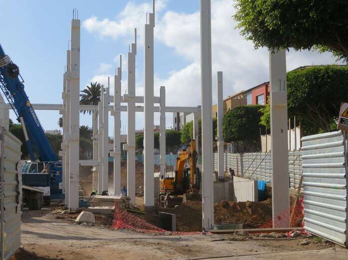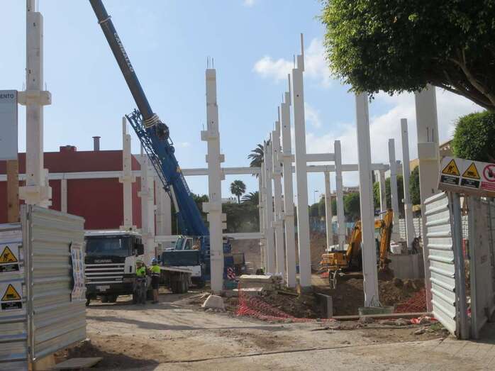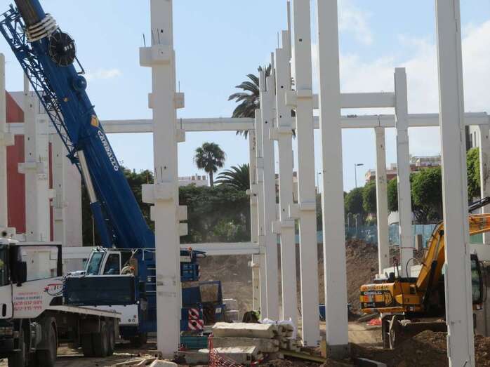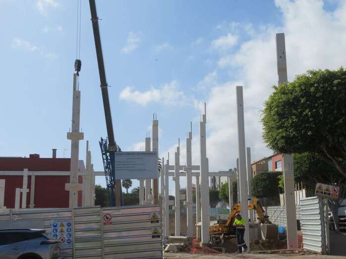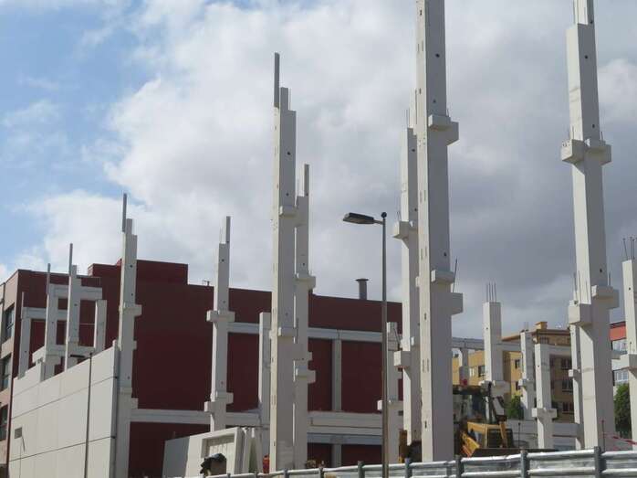 Las obras del edificio que albergará el futuro supermercado que la firma Lidl abrirá en la ciudad de Telde, en la zona de Arnao, continúan avanzando. En las últimas semanas los trabajos se han centrado en levantar las vigas y columnas sobre las que descansará el armazón el inmueble.