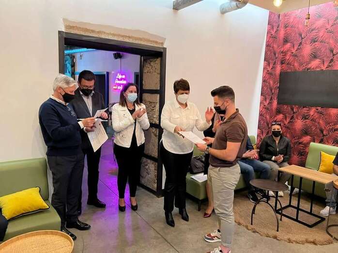 La consejera de Industria y Comercio del Cabildo, Minerva Alonso, hizo entrega este martes en el Aquelarre Cocktail Bar de los diplomas acreditativos de la formación recibida el año pasado a los 24 participantes de Telde en el curso sobre productos locales -vinos, quesos, aceites y sal de la Isla– que se impartió dentro del programa Gran Canaria Me Gusta, a través de la Cámara de Comercio y financiado por esta Consejería, y en el que en total participaron 191 miembros de los sectores de hostelería y turismo de toda la Isla.