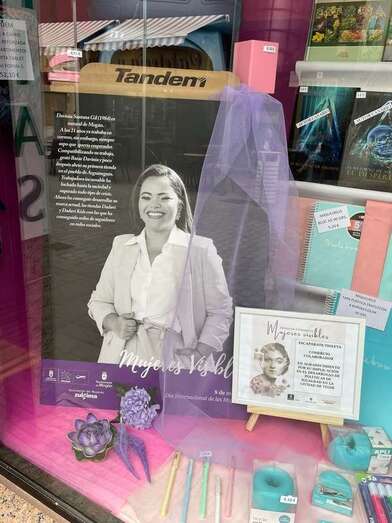 La iniciativa Escaparates violetas, promovida por la Concejalía de Políticas de Igualdad, que dirige Jonay López, y en coordinación con el área de Desarrollo Local, con Lidia Mejías al frente, distribuye hasta el próximo 28 de mayo la muestra itinerante Mujeres Visibles en 21 escaparates de negocios de la Zona Comercial Abierta de San Gregorio y San Juan.