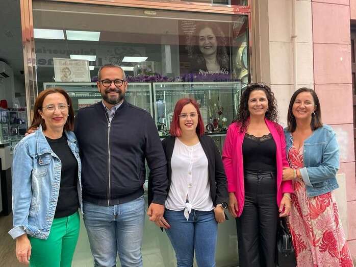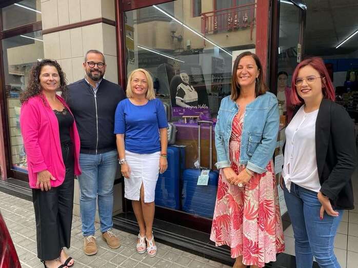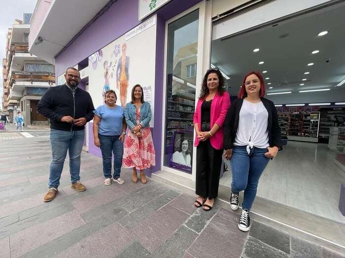 Jonay López visitó este martes, junto a Lidia Mejías, la dinamizadora de la ZCA de San Gregorio, Toñy Méndez, y una de las representantes de Telde en la exposición, Cynthia Florido, los negocios que hacen de expositor para concienciar en materia de igualdad.