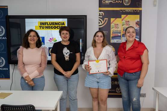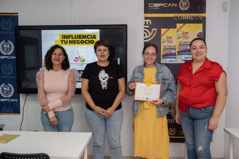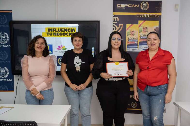 La consejera de Industria, Comercio y Artesanía del Cabildo de Gran Canaria, Minerva Alonso, junto a Lidia Mejías, concejala de Desarrollo Local de Telde, asistieron este viernes en Academia Cepcan a la clausura del proyecto Influencia tu Negocio.